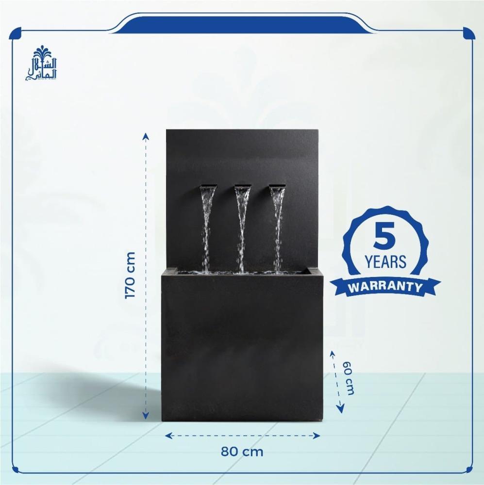 ثلاث مصبات لتدفق المياه بتوازن ، حيث يخلق صوتًا هادئًا ومشهدًا بصريًا يبعث الراحة والاسترخاء.