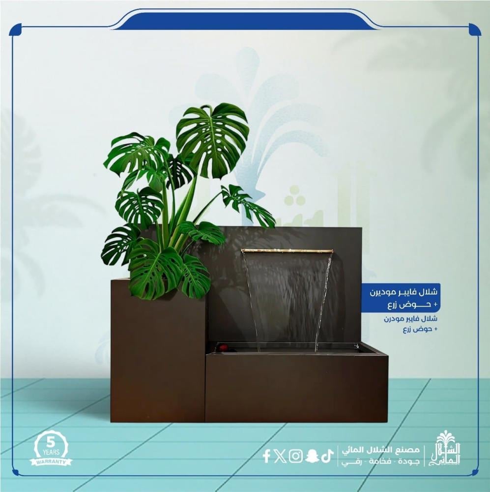 يتميز الشلال بوجود حوض زرع جانبي، و يتيح لك إضافة النباتات الخضراء لخلق جو طبيعي وجميل و يمكن ملء الحوض بالنباتات المفضلة لديك، و يعزز جمال المكان بشكل عام.