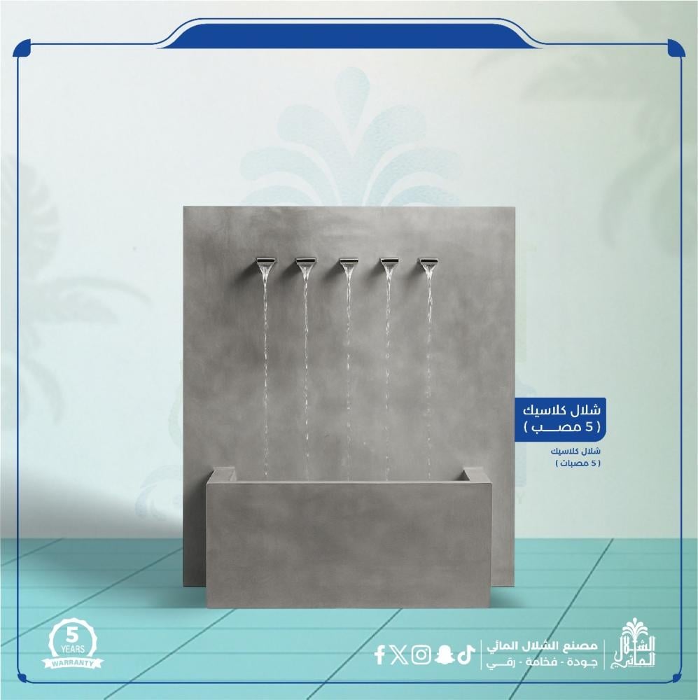 - أضف لمسة من الفخامة والهدوء إلى أي مساحة داخلية أو خارجية مع شلال كلاسيك 5 مصب، المصمم بعناية ليجمع بين الجمال العملي والتفاصيل الراقية.