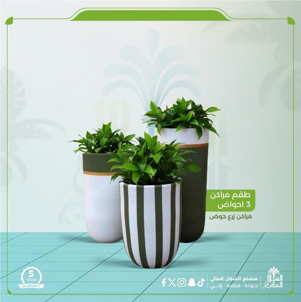 • طقم مراكن زراعيه 3 أحواض هو الخيار المثالي لأولئك الذين يبحثون عن منتج مرن وأنيق يناسب جميع الأماكن مع ضمان الراحة والتجديد المستمر.