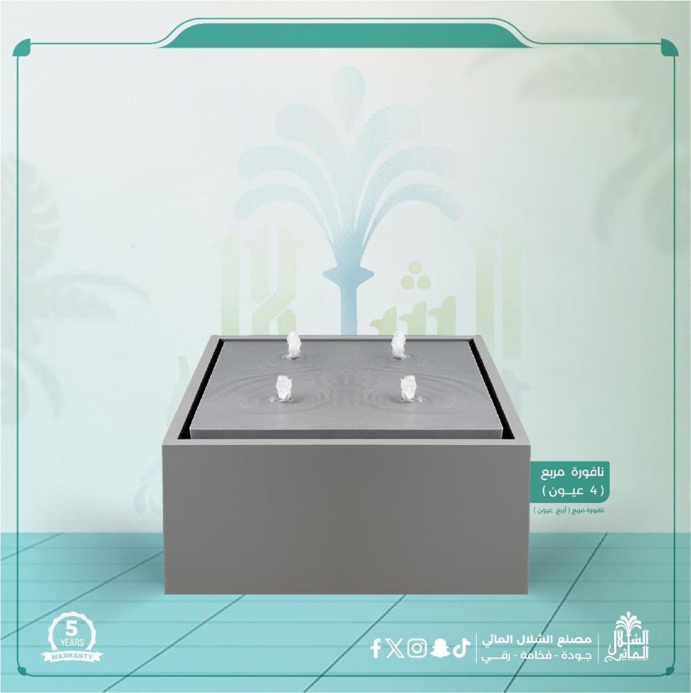 تحتوي على 4 منافذ مائية تضفي حركة مائية مدهشة، وذلك يخلق تأثيرًا بصريًا مذهلاً ويضيف حيوية للمكان و توزيع المياه عبر هذه العيون يعطي إحساساً بالجمال.