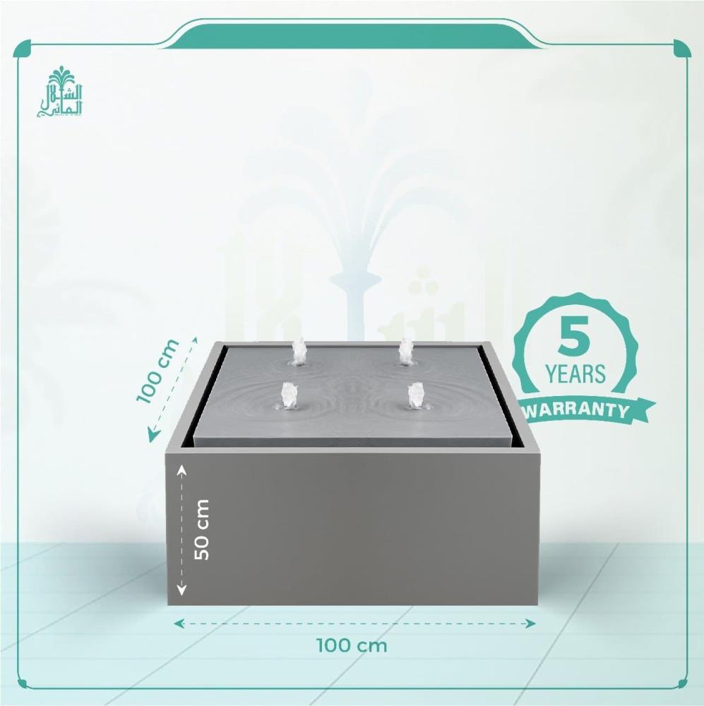 تصميم النافورة المربع يمنحها مظهراً عصرياً يتناسب مع مختلف أنواع الديكورات و يمكن أن تكون نقطة جذب بارزة في أي مكان توضع فيه.