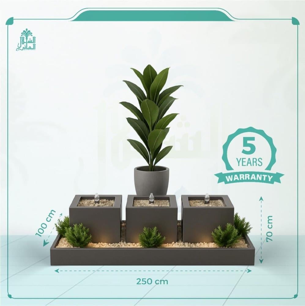 - تأتي نافورة مودرن بلون رمادي عصري يتناسب مع جميع أنواع الديكورات سواء كانت داخلية أو خارجية، وهذا يضيف لمسة من الأناقة والهدوء إلى المساحات المحيطة.