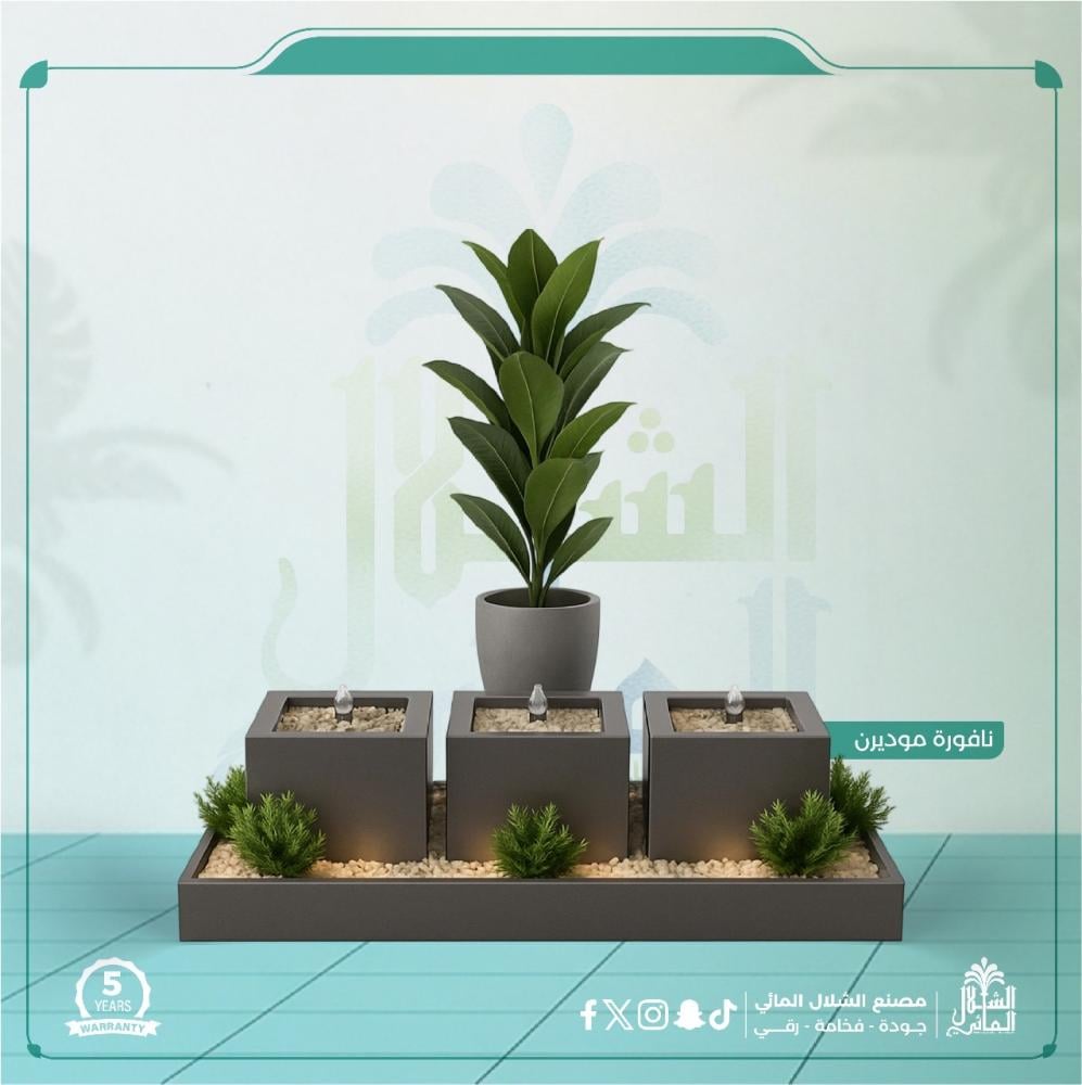 - إذا كنت تبحث عن إضافة لمسة من الفخامة لمحيطك، فإن نافورة مودرن هي الحل الأمثل؛ حيث تتميز بتصميم عصري، إضاءة قابلة للتعديل، ومتانة تدوم طويلاً.