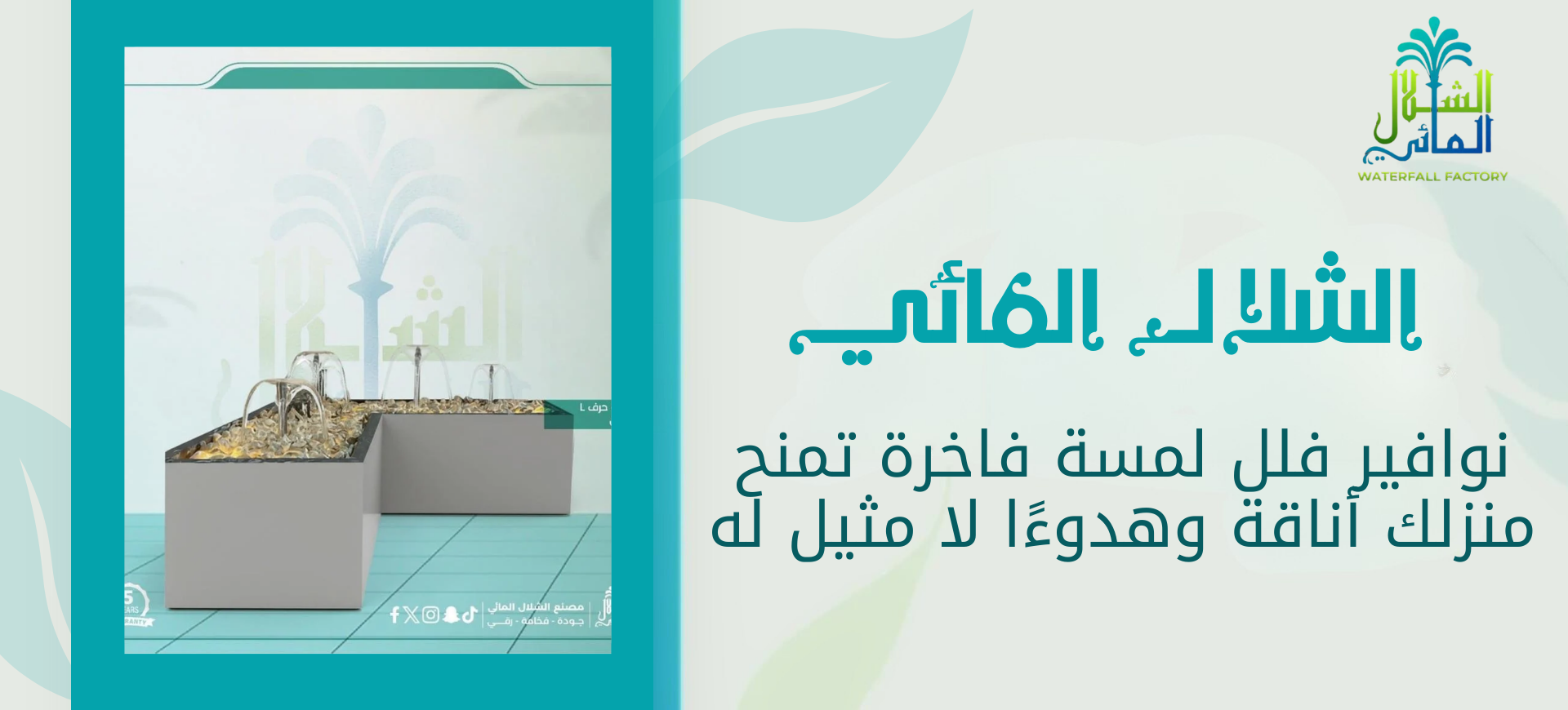 لأن متجر الشلال المائي يضمن لك جودة عالية وخدمة كاملة من التصميم إلى التركيب، بالإضافة إلى: